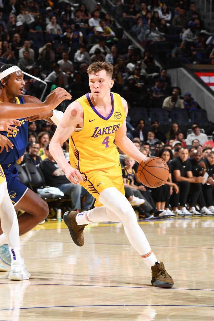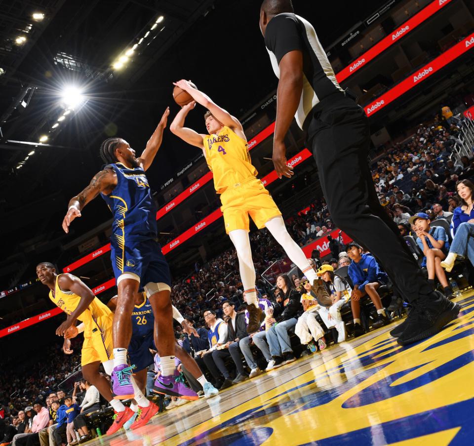 及至末节比赛,勇士一波6-2攻势扩大13分优势,湖人冲击内线逐步追到68-77落后9分,辛森与斯威德对攻一记三分。斯威德两罚全中追到差7分,辛森再中一记三分,克内克特与斯威德连续得分,湖人还剩不到2分钟追到80-85仅差5分。沙克尔福德命中关键三分,湖人接连打铁不中,随后也是无力扭转局势,最终湖人遭勇士逆转遭遇夏联首败。