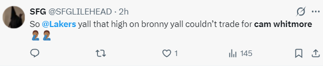 湖人球迷:湖人对布朗尼太过于狂热?以至于你们都不愿意去换白魔了。