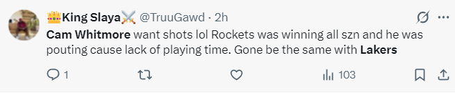 湖人球迷:白魔调侃的说“火箭正在赛季都在赢球白魔在那里打不上球,他来到湖人也会是同样的情况”