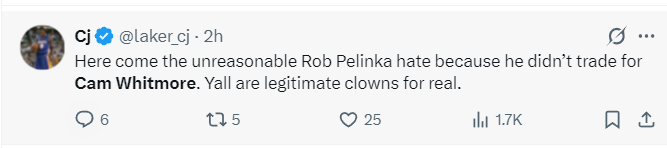 湖媒:瞧,那些人开始对佩林卡发飙了,他们认为湖人没能换来惠特莫尔是失败,这些家伙太愚昧了。