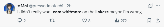 湖蜜:关于惠特莫尔加盟湖人的流言就此终结了。